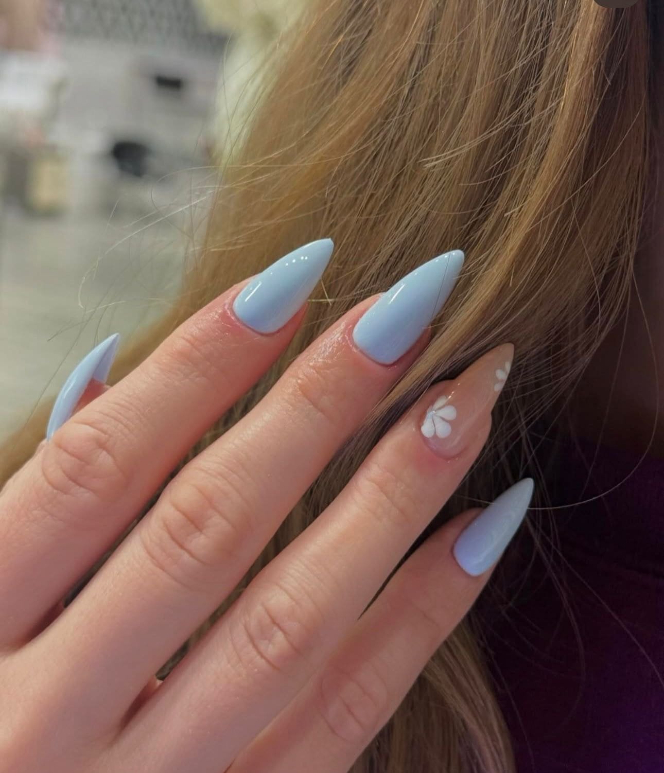 A chrome manicure creates a bold, reflective shine with a smooth mirror-like effect. This finish instantly elevates any gel color, giving your manicure a modern, polished glow that catches the light from every angle.